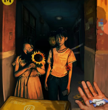 答案:点击右下角手里的奶糖,他要给孩子们糖果,把孩子们带离这里。