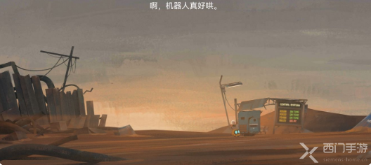 4、之后来到了一个周围都是机器人的地方,点击机器人对话,他们都很呆滞,点击中间红色的按钮,他们就能够对话了;