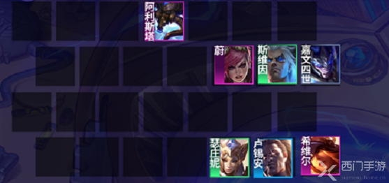 1、阵容成员:希维尔+嘉文四世+瑟庄妮+斯维因+卢锡安+蔚+牛头