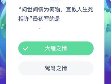 问世间情为何物,直教人生死相许最初写的是-12月17日蚂蚁庄园答案