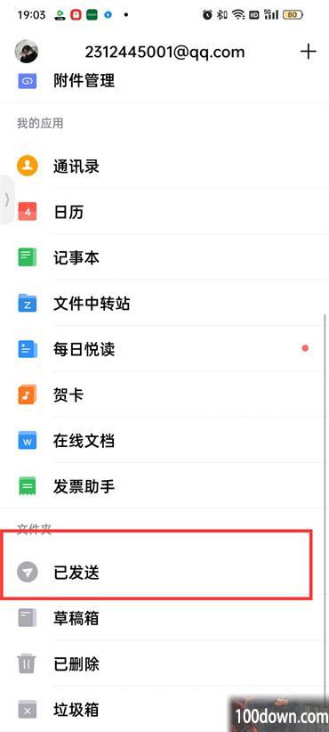 1.首先打开QQ邮件软件进入到首页之后往上滑动点击【已发送】;