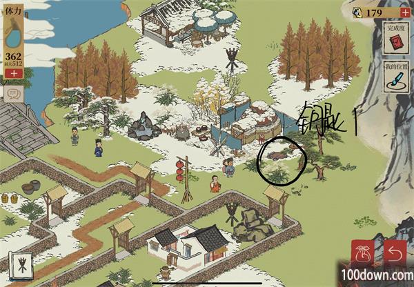 1、钥匙一:在千树梨花的旁边找到钥匙一;