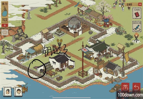 3、钥匙三:在徽墨工坊的左后方找到钥匙三;