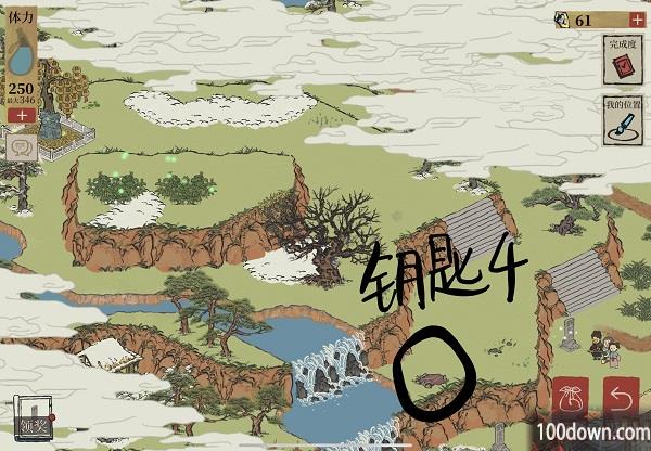 4、钥匙四:完成吟诗的石碑、解锁迷雾后可以看到钥匙四,具体如下图;