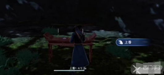 5、跟着指引到下图位置,找到对应的灵台上香;