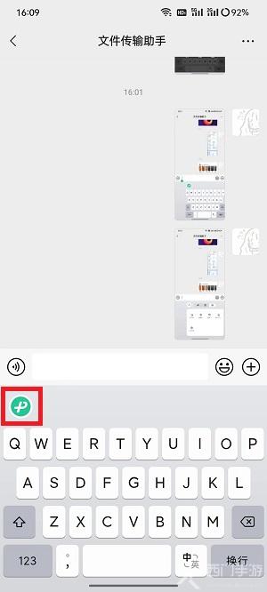 2、唤起微信键盘后,点击左上角的logo“P”;