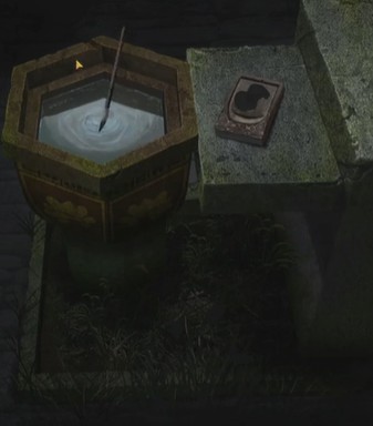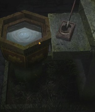 14、回到有水井的院子里,在这里可以找到刚刚消失的绣花鞋,使用毛笔蘸取黑色的墨汁;