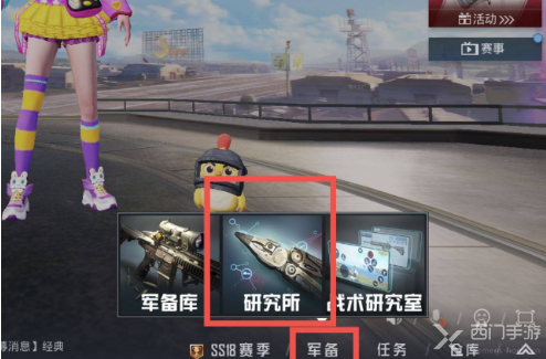 2、获取之后,点击游戏界面右下角的“军备”,然后选择“研究所”;