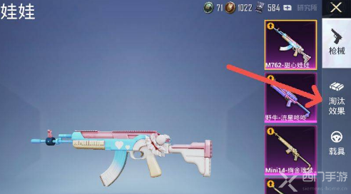 3、在右侧一栏中有一个【枪械】,找到mini14后选择【淘汰效果】;