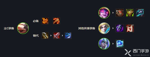 主c老鼠必备飓风杀人剑,最后一件装备无尽巨杀,老鼠自带轻语,饮血会缺伤害当然没有无尽巨杀也可以给。其次就是莉莉娅的肉装,狂徒反甲龙牙比较均衡一点,板甲救赎泰坦日炎传送门也可以用,多的物理装备可以给男刀补输出,功能装备冰心给琪亚娜对位后排,吹风能做就做一个,最好直接吹最肉的前排。
