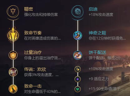 精密+致命节奏,这套符文可以打出非常高额的爆伤害,让女警的输出更上一层楼;