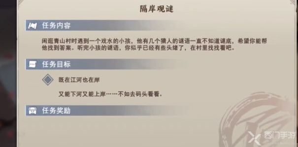 1、玩家要来到青山村的码头位置,找到npc【小李子】对话来领取任务,如下图: