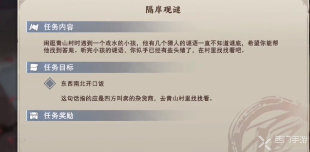 在不良人3游戏中有很多轶事任务,其中隔岸观谜是青城山的轶事的任务,这个任务的过程是有一些复杂的,其中会有一些提示需要玩家去找,那么这个任务具体该怎么完成呢,接下来小编为大家带来了详细介绍,希望可以帮助到大家。