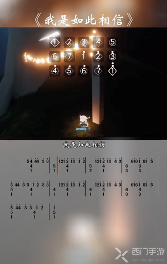 在光遇游戏中玩家可以演奏各种曲子,其中我是如此相信是周杰伦演唱得到一首歌曲,这首歌受到了很多玩家的喜爱,有玩家想知道这首歌曲的琴谱,接下来小编为大家带来了详细介绍,希望可以帮助到大家。