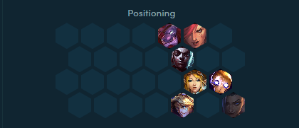5、站位图:极客在该版本是一个比较弱势的阵容,极客英雄前期输出不足,很容易因为卖血太多而撑不到后期,所以在站位上前排还是尽量选择一些能输出又能抗的英雄,给予每一个英雄足够的输出装备。