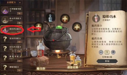 1.首先玩家们来到寝室喝下隐形药水,药水的持续时间为30分钟(没有药水的玩家们可以在魔药锅里制作);