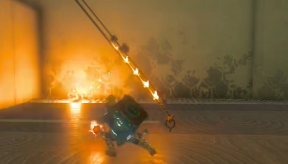 2、然后使用红宝石杖,将这边的绳子点燃;