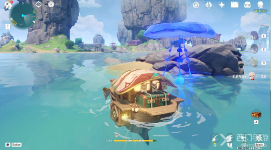 悠悠云阶刷新路线:往「夜鸦船长」小岛浪船锚点方向跳悠悠云阶,先往上跳,后往下跳。