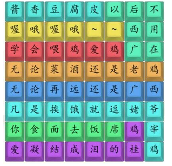 酱香豆腐皮、喔哦喔哦~~、无论菜酒还是老鸡、无论再远还是广西、凡是挨饿就逗姥爷宰鸡、你食面去饭席、爱凝结成泪的桂鸡、学会喂鸡爱鸡、以后不用在广西。
