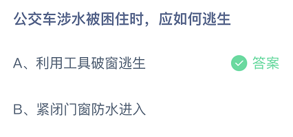 公交车涉水被困住时,应如何逃生-蚂蚁庄园7月23日答案
