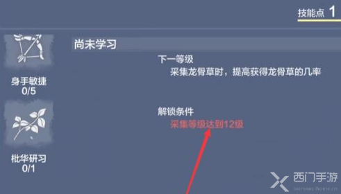 1.玩家要想采集龙骨草,首先最好将自己的采集等级提高到12级,这样可以有大概率获得;