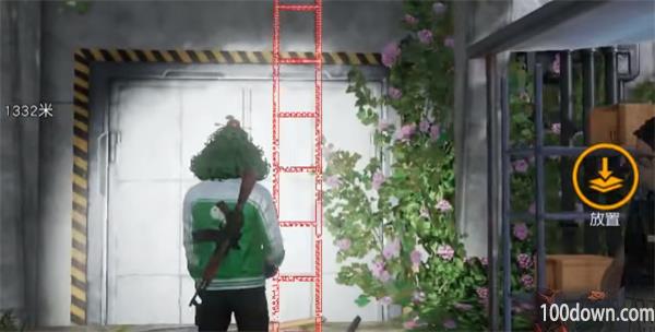 2、根据步骤,在西部哨所这里找到下图的大门,然后使用伸缩梯。