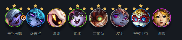 阵容成员:小炮、薇古丝、小法、璐璐、吉格斯、波比、黑默丁格、迦娜