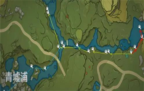 璃月青墟浦 :玩家可以沿着青墟浦路线一路收集青蛙。