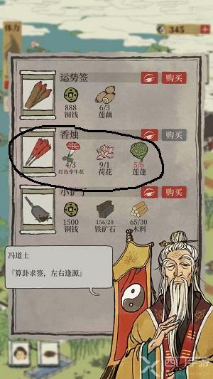 3.然后就可以在那里购买香烛了,需要红色牵牛花3个,荷花1个,莲蓬6个;