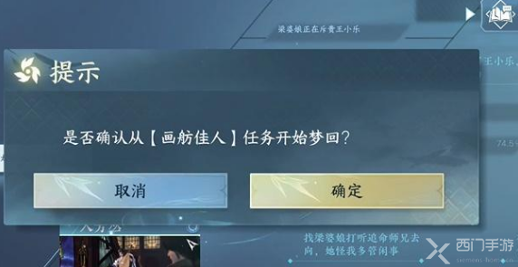 1、玩家是需要从“画舫佳人”这个任务开始梦回,然后在对话中选择【帮他说话】;