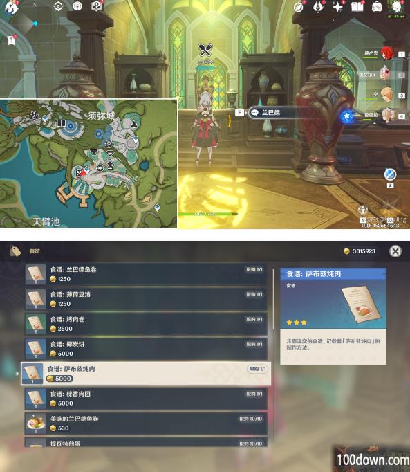 1、【获取方法】:这个是食谱可以在须弥城「兰巴德酒馆」处够买,售价为5000摩拉,位置如下: