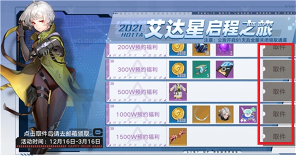 2、进入以后福利页面以后玩家们选择【启程补给】活动,然后点击右边【取件】,获得的奖励将会在邮箱中发放;