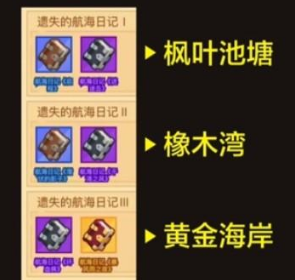 “航海日记启程”、“航海日记迷途岛”可以在枫叶池塘钓取获得。
