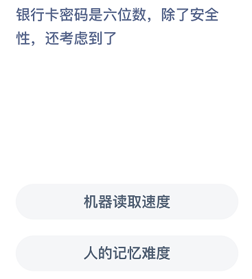 银行卡密码是六位数,除了安全性,还考虑到了-蚂蚁庄园7月21日答案