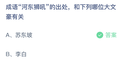 成语河东狮吼的出处,和下列哪位大文豪有关-蚂蚁庄园8月26日答案