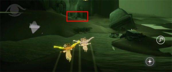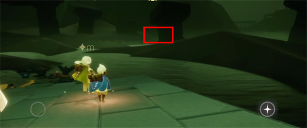 1、接着玩家们调转视角,可以看到有一个石柱,玩家们需要绕到石柱的后面;