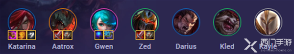 1、阵容成员:卡特+剑魔+格温+劫+诺手+克烈+天使
