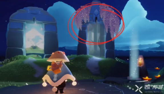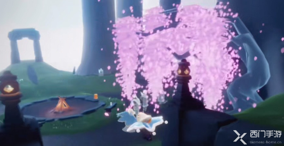 3、在樱花树下会有很多的先祖在那里聊天小憩,这次兑换的先祖则是在雨林樱花树背后,如下图: