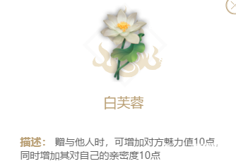 白芙蓉花束可以提高赠送对象的魅力值30点,还可以增加彼此的亲密度30点;