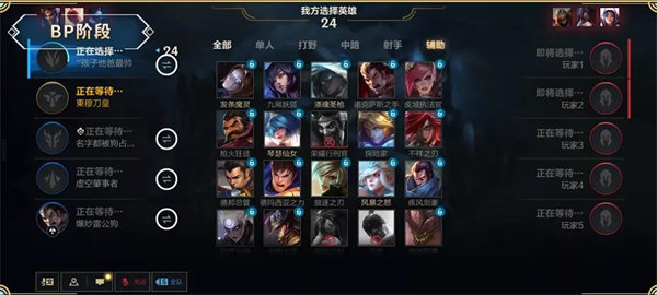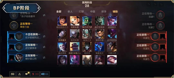 在排到人且接受对局后,就将进入BP环节,和匹配模式不同,排位赛有优先从3楼开始BAN人,每人BAN掉一个英雄,一共BAN掉6名英雄后开始依次选人。