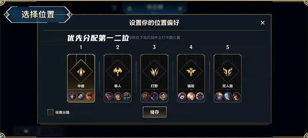 在匹配比赛的时候,系统会优先按照召唤师的首选玩法定位来匹配队友。然后是次选定位,只有在极少数的情况下,召唤师才会被分配到第3或第4号定位,而被放在第5格位置的定位,正常情况下不会被分配。