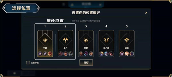 开始排位赛之前,要注意好自己使用的分路定位,把自己擅长的位置放在最前面,把不擅长的放到后面。