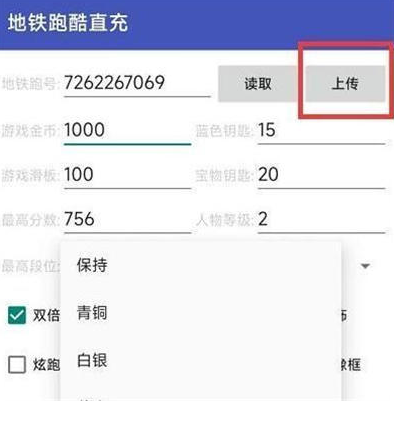 4、等全都选择好之后,选择读取,然后上传上去,之后回到游戏就可以看到已经充好的游戏道具。