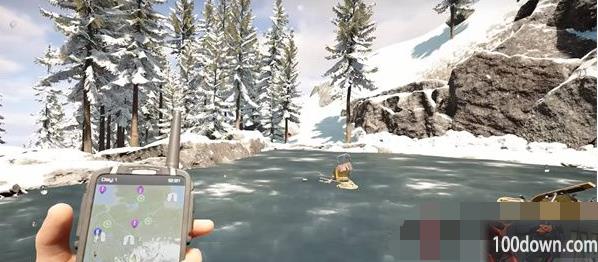 3、然后沿着小溪走到一个结冰的湖,在湖边的位置可以找到一个橙色的帐篷;