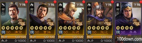 推荐阵容三:满宠 + 曹仁 + 张辽 + 乐进+ 李典
