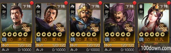 推荐阵容四:满宠 + 夏侯淳 + 曹操 + 徐晃 + 甄氏
