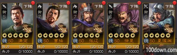 满宠和徐晃的组合可以让整个队伍非常强大,程昱的战斗技能可以在前三回合造成敌军缴械效果,让队伍在前期可以很好的过渡,夏侯淳和曹操组成的输出核心可以给敌人造成相当大的伤害。