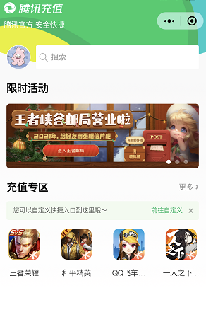 2、然后选择【腾讯充值小程序】,进入小程序之后,搜索王者荣耀;