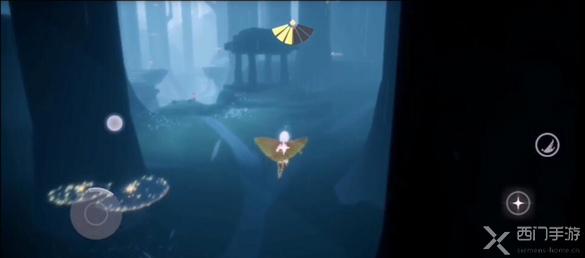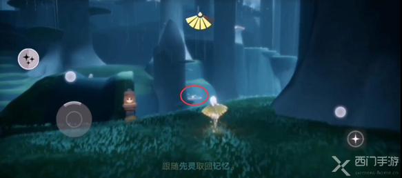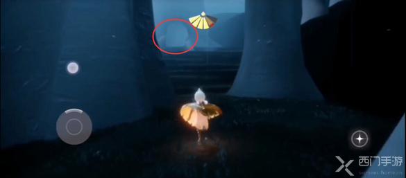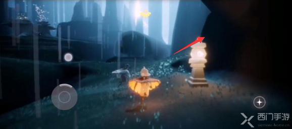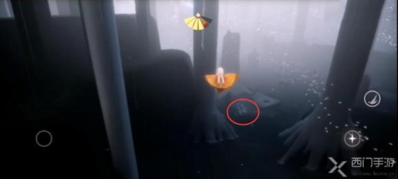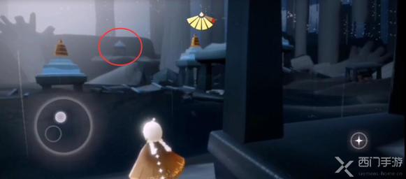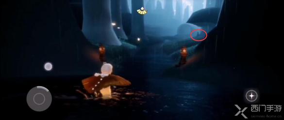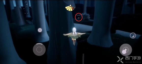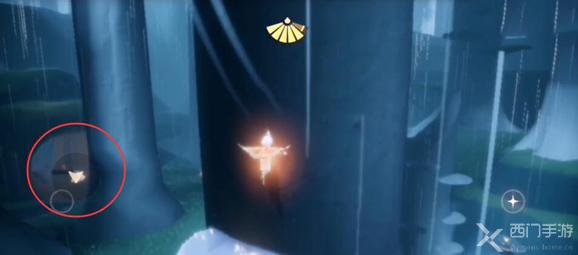 可以看到这里有个树洞,这里有一个光之翼,出了树洞之后,往对面飞去,标记位置有第6个先祖;