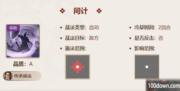 问计:【启动】对敌军单体造成65%~130%谋略伤害。